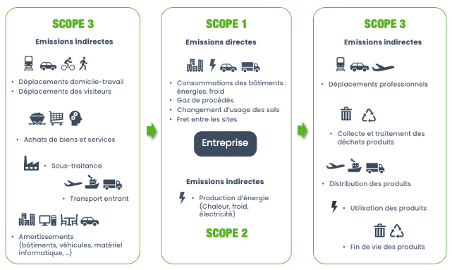 Nous réalisons le bilan de vos émissions de gaz à effet de serre (GES) sur les 3 scopes conformément à la réglementation